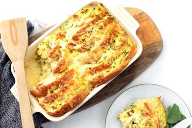 7. Sprinkle over extra cheese and bake for 40 minutes. 8. Cut into squares and serve.