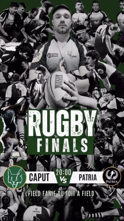 Plakkaat van die rugby eindstryd tussen Caput en Patria.